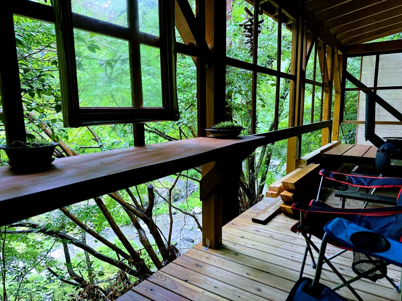 一つは、川のせせらぎを眼下に望む「川沿いデッキ」。インフィニティチェアに深く腰を下ろし、目を閉じれば、水の音と風のささやきが全身を包み込みます。もう一つは、より深い緑に囲まれた「森林浴エリア」。木々の香りに包まれながら過ごすひとときは、まさに大人のための秘密基地での休息。休憩スポットを2箇所設けている点にも、ゲストに最高の休息を提供したいというオーナーの細やかな気配りが感じられます。
